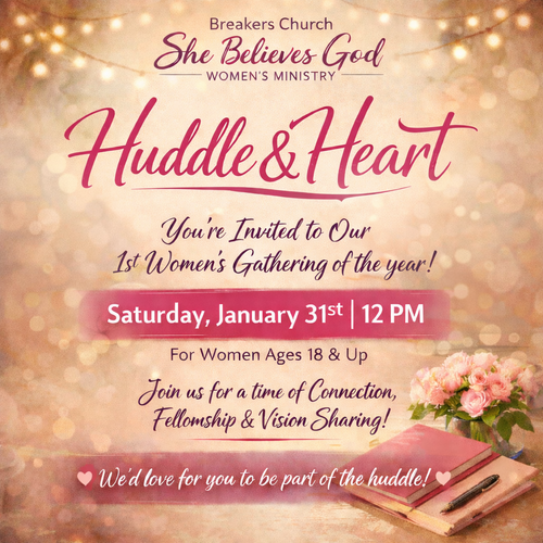 An intimate gathering designed to bring women together in fellowship, transparency, and purpose. This special time will focus on sharing the heart and vision of the She Believes God Women’s Ministry, while creating space for meaningful connection, encouragement, and sisterhood. Through conversation, reflection, and bonding, women will be strengthened in faith, unity, and their commitment to walking boldly in God’s promises.